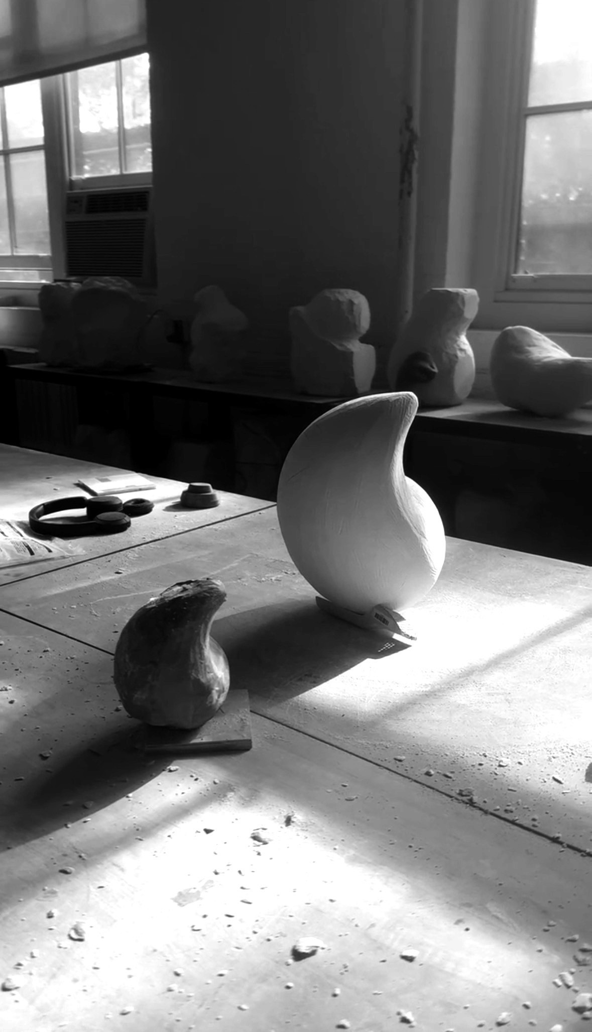 The convexity exercise involved creating several iterative studies in plasticine to study volume, light, and shadow. It culminated with the carving of a 50 and 10 pound block of plaster to match my intended gesture.