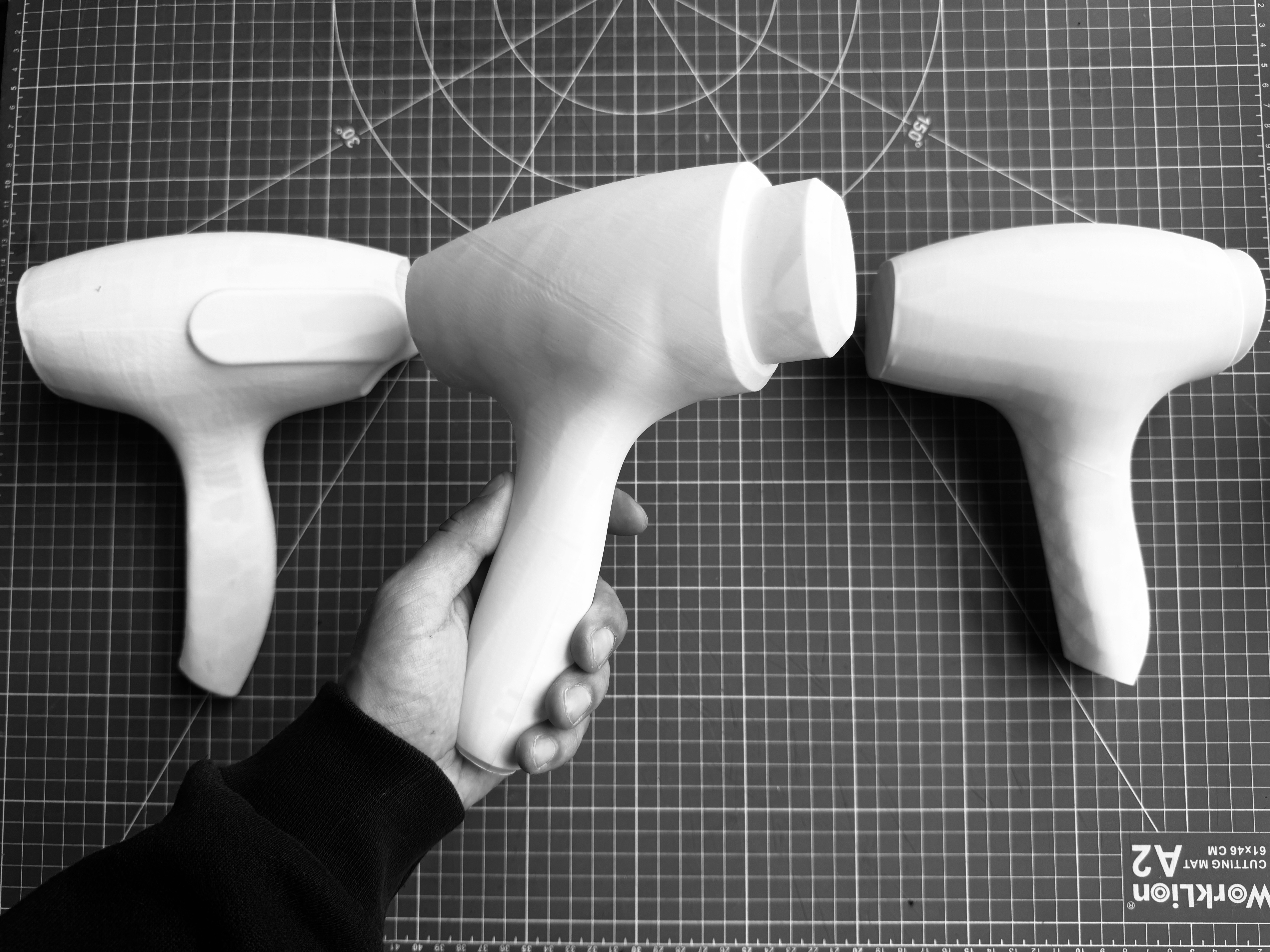 I surface modeled 3 designs before picking a form which felt proportionally sound and comfortable in hand.