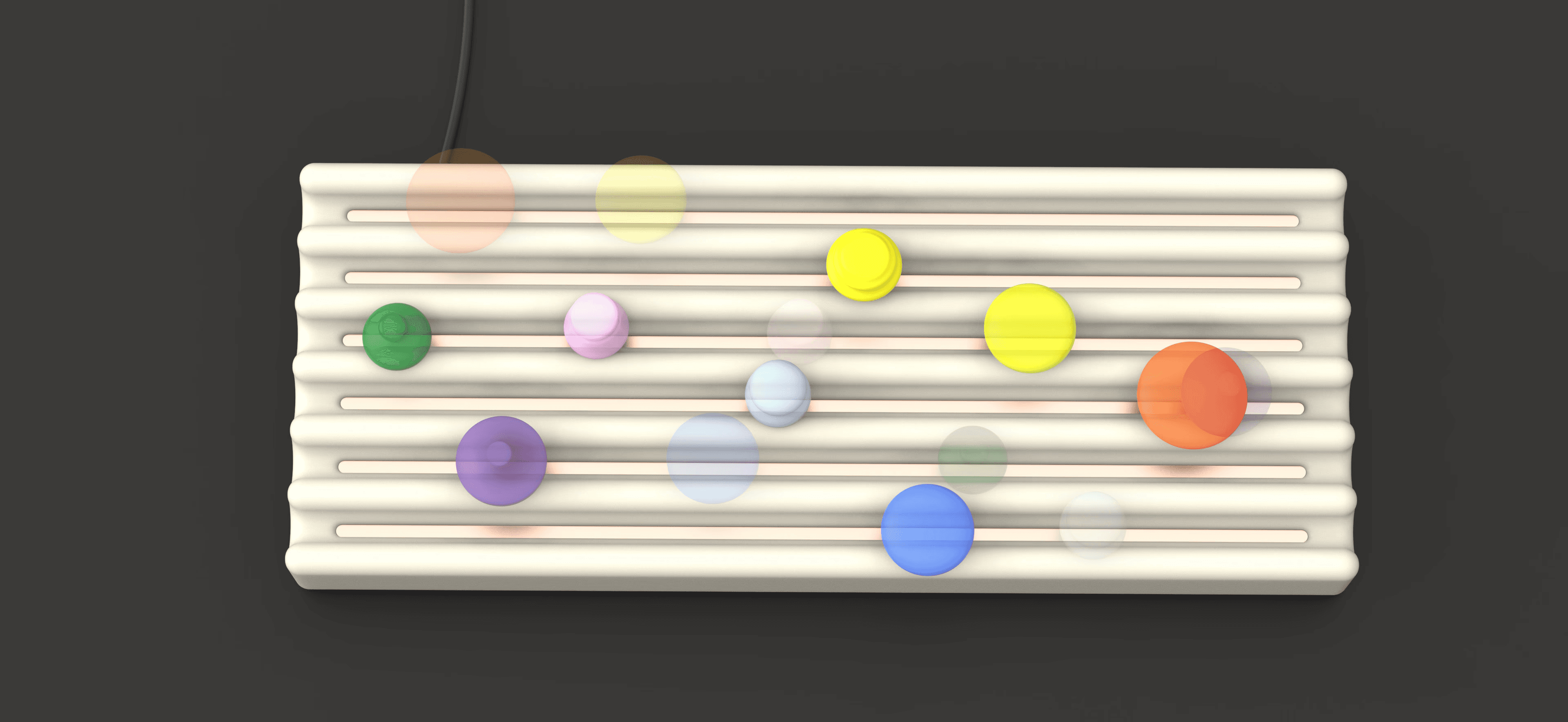 The tactile sequencer allows users to explore melodic and percussive patters through a physical interaction. By arranging the different pieces along the board, the user can create different sequences of sounds live.