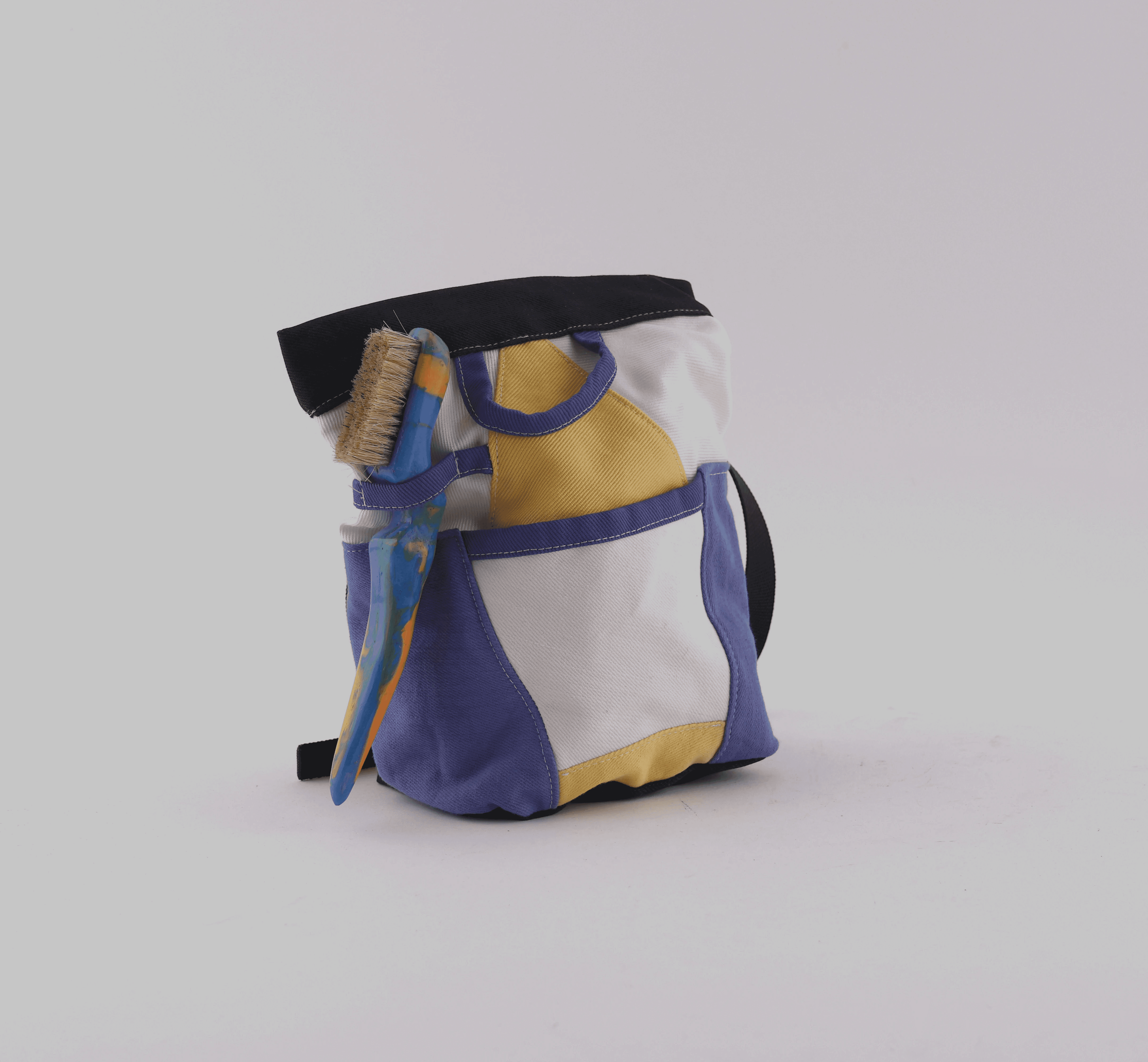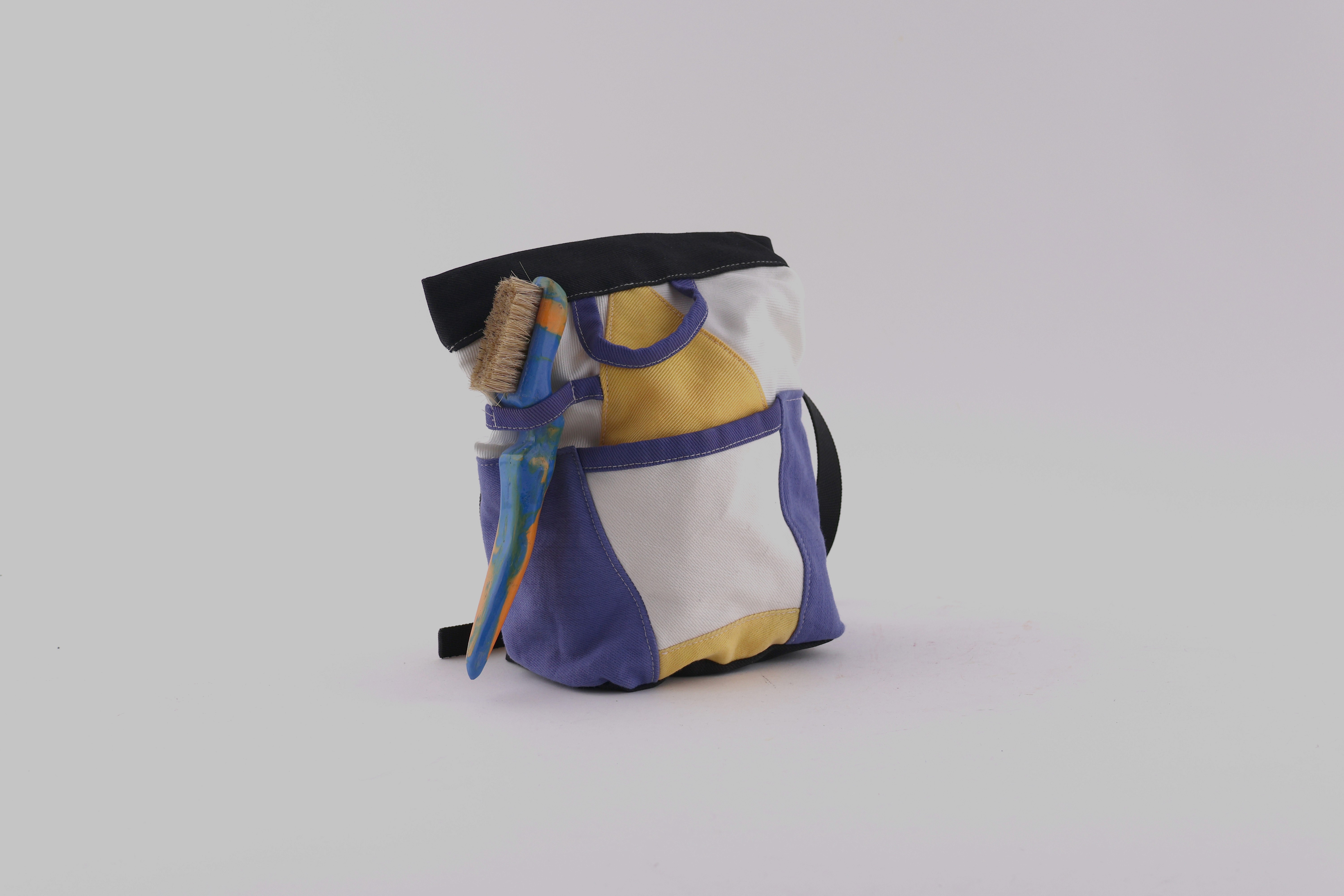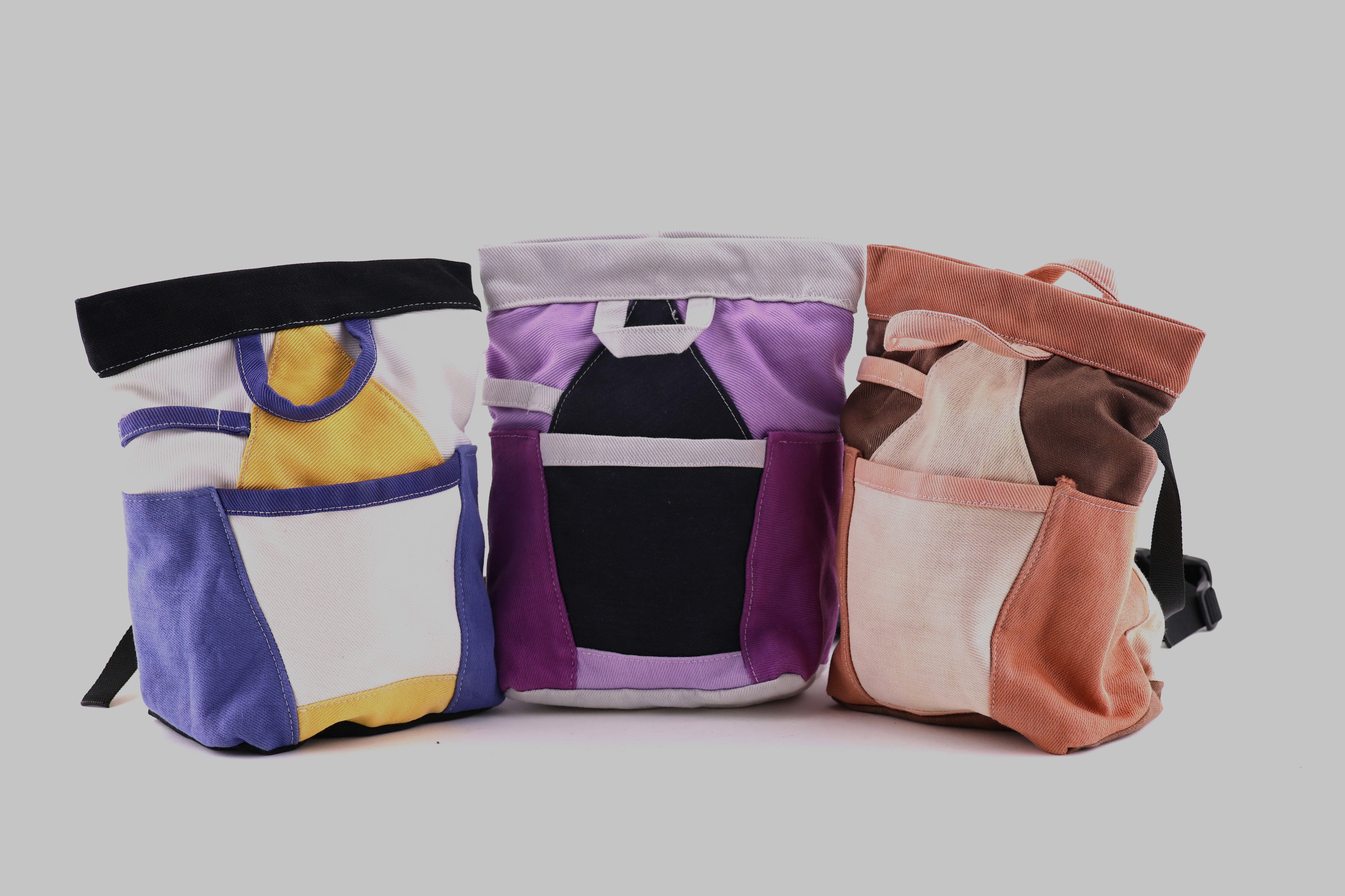 I fabricated 3 samples using magnetic strips in the closure to prevent chalk from leaking, a cotton twill shell, and a fleece lined interior.